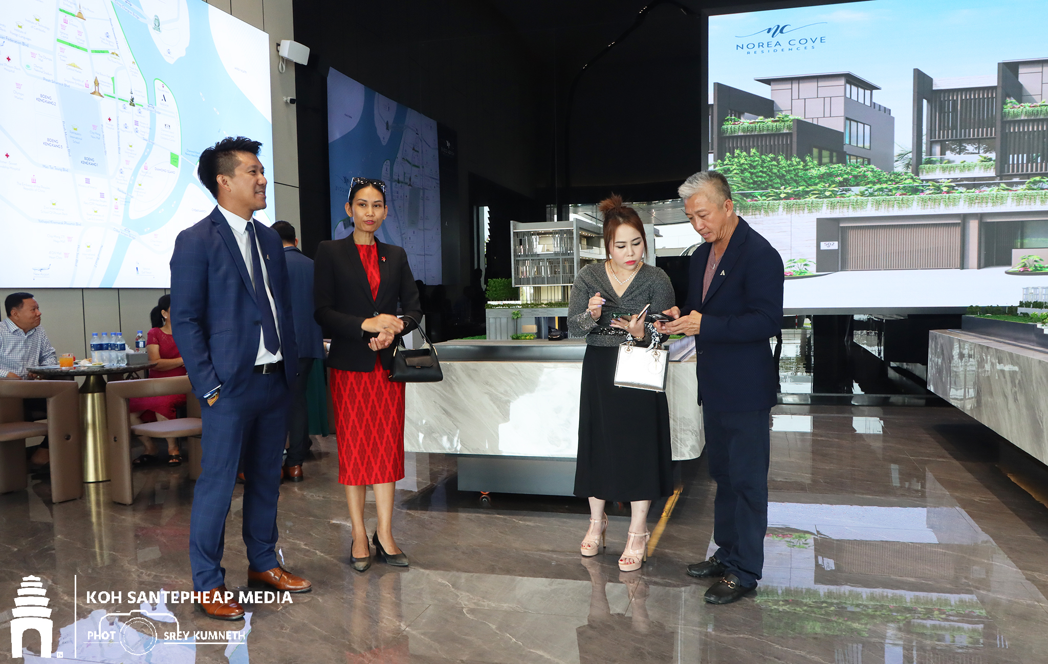 នៅក្នុងពីធីដ៏ឱឡារិកនេះ បរិយាកាសនៅខាងមុខគម្រោងលំនៅឋាន ដែលស្ថិតនៅមុខទន្លេកោះនរា ពោរពេញទៅដោយភាពរំភើបជាមួយនឹងម្ចាស់លំនៅឋាននាពេលខាងមុខ ។ ឥស្សរជន និងបងប្អូនអ្នកសារព័ត៌មានជាច្រើនចូលរួម ដើម្បីជាសក្ខីភាពកក្នុងការចាប់ផ្ដើមការអភិវឌ្ឍន៍មួយ ដែលជាការសន្យាថា នឹងផ្ដល់ភាពអស្ចារ្យល្អប្រណីតនៅក្នុងប្រទេសកម្ពុជា ។