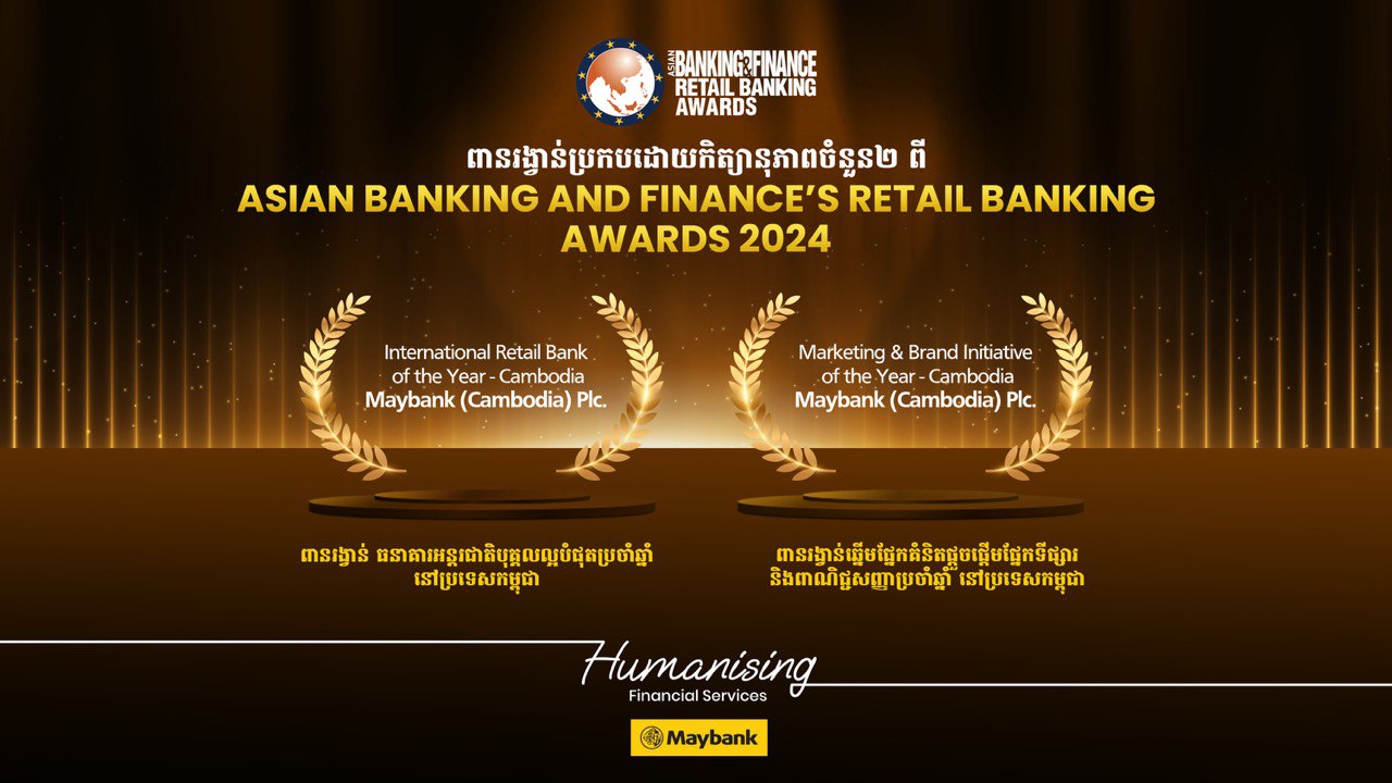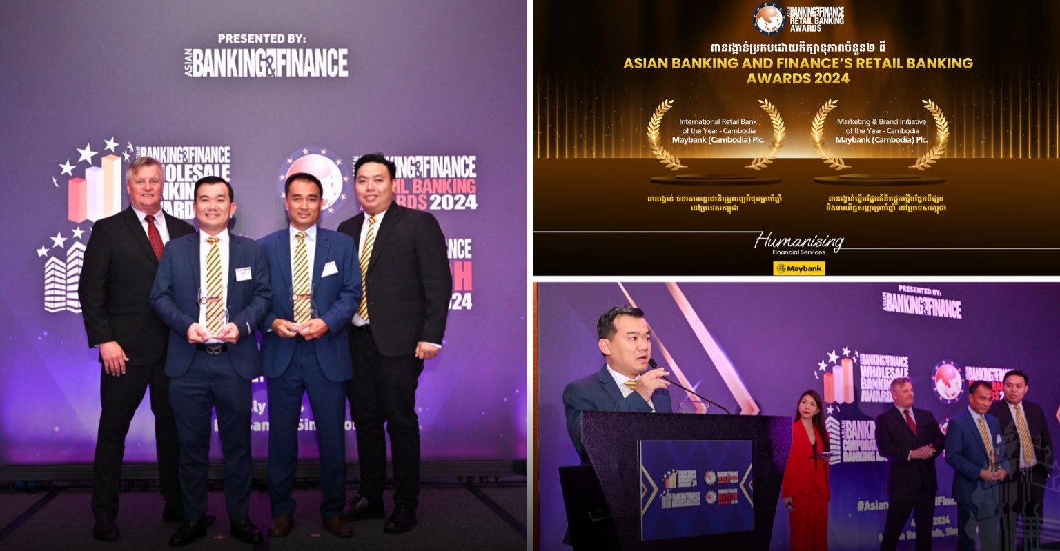ប្រទេសសិង្ហបុរី, ថ្ងៃទី ០៤ ខែកក្កដា ឆ្នាំ ២០២៤ ៖ ធនាគារ មេយប៊ែង ខេមបូឌា មានមោទក ភាពក្នុងការប្រកាសពីជ័យលាភីប្រកបដោយកិត្យានុភាពធំៗចំនួនពីររបស់ខ្លួនពីកម្មវិធី Asian Banking and Finance (ABF)’s Retail Banking Awards ប្រចាំឆ្នាំ ២០២៤ គឺពានរង្វាន់ ធនា គារអន្តរជាតិបុគ្គលល្អបំផុតប្រចាំឆ្នាំ នៅប្រទេសកម្ពុជា និងពានរង្វាន់ឆ្នើមផ្នែកគំនិតផ្តួចផ្តើម ផ្នែកទីផ្សារ និងពាណិជ្ជសញ្ញាប្រចាំឆ្នាំ នៅប្រទេសកម្ពុជា ។ ការប្រកាសជ័យលាភីពានរង្វាន់ ទាំងពីរនេះ ត្រូវបានធ្វើឡើងជាផ្លូវការក្នុងពិធីប្រគល់ពានរង្វាន់ អមនឹងកម្មវិធីលាងសាយភោជន ដែលប្រារព្ធឡើងនៅ Marina Bay Sands ប្រទេសសិង្ហបុរី នាថ្ងៃទី ០៤ ខែកក្កដា ឆ្នាំ ២០២៤ ។