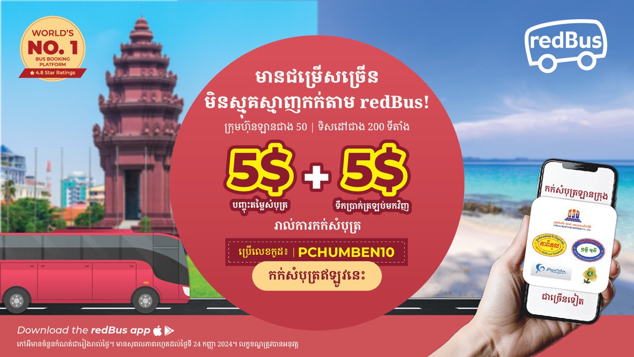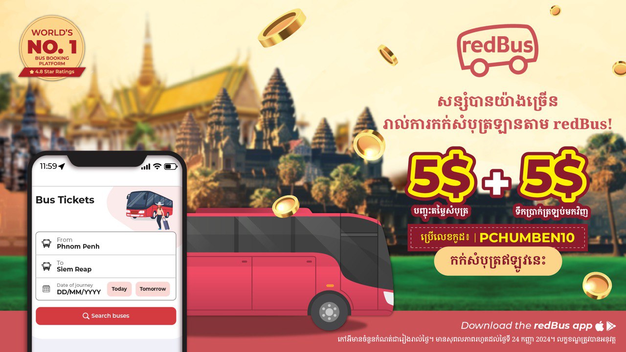 ការបញ្ចុះដ៏ពិសេសពី redBus ចាប់ពីថ្ងៃទី ១ ដល់ ទី ២២ ខែកញ្ញា ៖