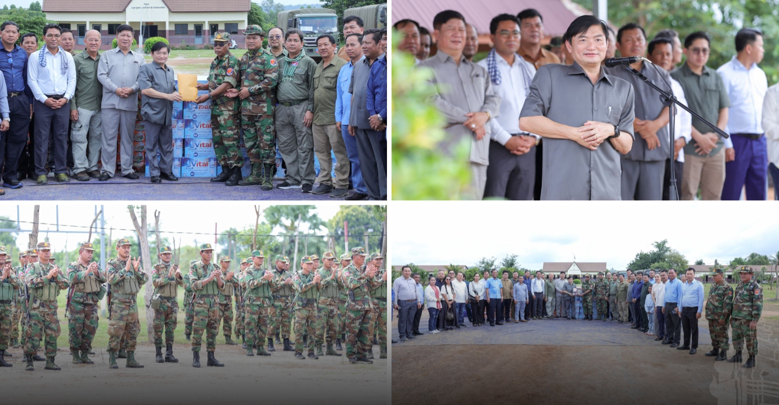 រាជធានីភ្នំពេញ ៖ ឯកឧត្តម ហេង សួរ រដ្ឋមន្ត្រីក្រសួងការងារ និងបណ្ដុះបណ្ដាលវិជ្ជាជីវៈ នាព្រឹកថ្ងៃទី១០ ខែមិថុនា ឆ្នាំ ២០២៥ នេះ បានដឹកនាំគណៈប្រតិភូជាថ្នាក់ដឹកនាំក្រសួង និងថ្នាក់ដឹកនាំសហជីព អញ្ជើញចុះជួបសំណេះសំណាល សួរសុខទុក្ខ និងប្រគល់អំណោយជាគ្រឿងឧបភោគ បរិភោគជូនដល់នាយទាហាន នាយទាហានរង និងពលទាហាន នៅកងពលតូចថ្មើរជើងលេខ ៤២ ដែលកំពុងឈរជើងនៅសមរភូមិមុខទិសប្រាសាទតាមាន់ ក្នុងខេត្តឧត្តរមានជ័យ ៕ អត្ថបទសហការ
