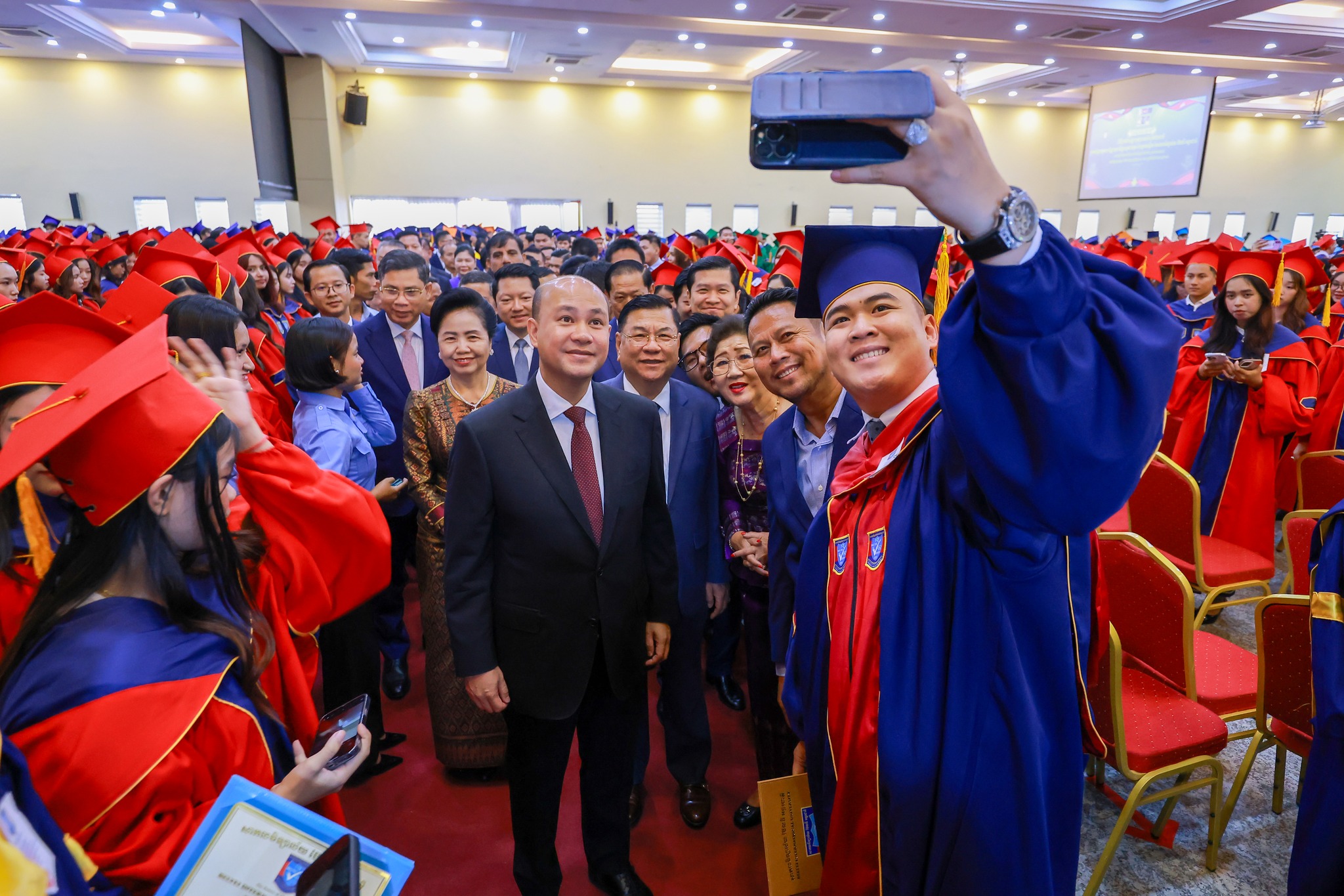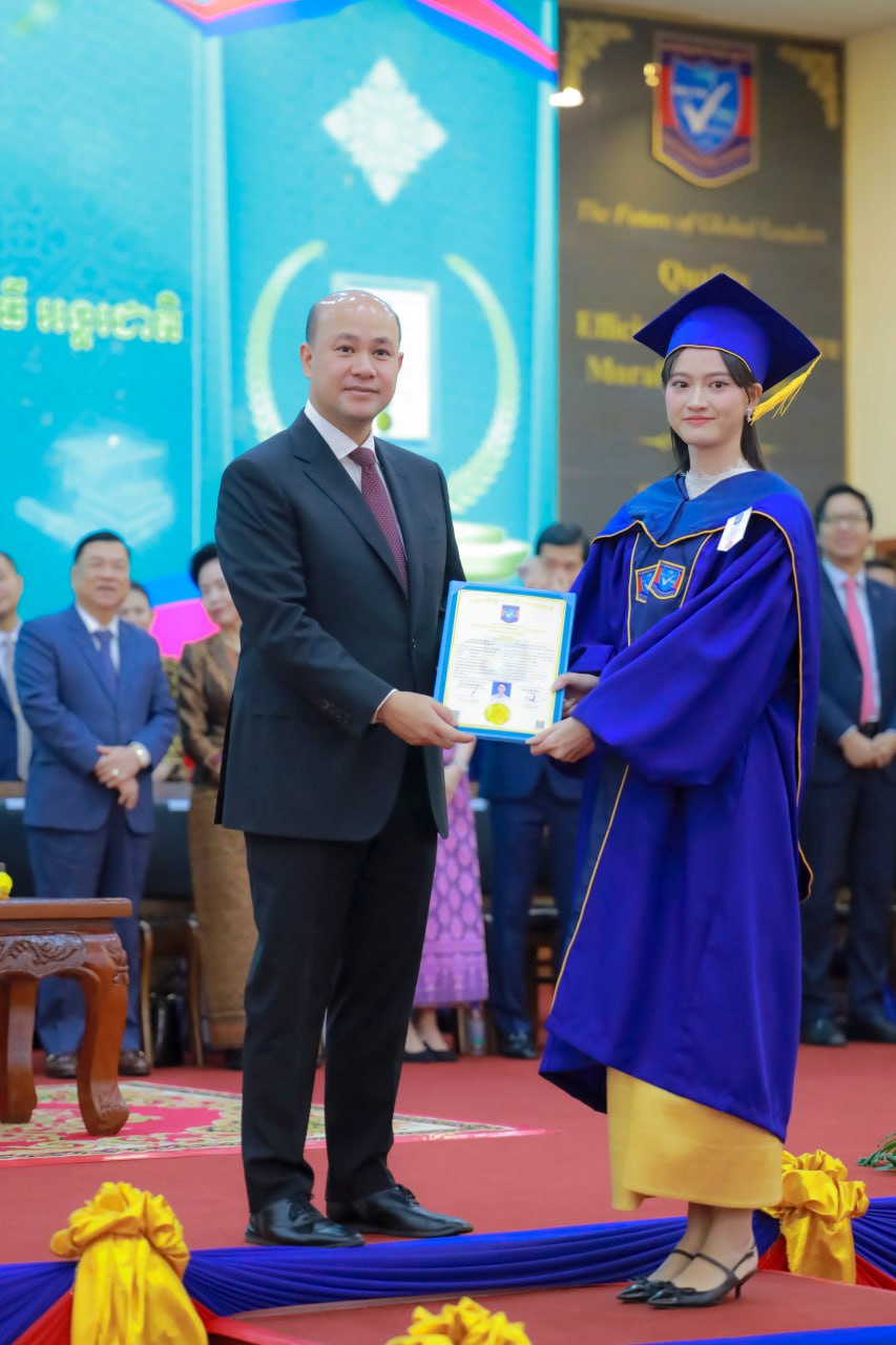 ក្នុងឱកាសដ៏ឧត្តុង្គឧត្តមនោះ ឯកឧត្តមឧបនាយករដ្ឋមន្ត្រី ហ៊ុន ម៉ានី បានចូលរួមអបអរសាទរដល់និស្សិតជ័យលាភីទាំងអស់ដែលបានបញ្ចប់ការសិក្សាដោយជោគជ័យ និងទទួលសញ្ញាបត្រនៅថ្ងៃនេះ។ ឯកឧត្តមឧបនាយករដ្ឋមន្ត្រី ក៏បានជូនពរ និងកោតសរសើរដល់ការខំប្រឹងប្រែងរបស់និស្សិតជ័យលាភីដែលទើបតែបានបញ្ចប់ការសិក្សា ដោយដោយសង្ឃឹមថា អ្នកទទួលសញ្ញាបត្រនៅថ្ងៃនេះ ទទួលបានជោគជ័យក្នុងមាគ៌ាជីវិតជាបន្តបន្ទាប់ នាំកិត្តិយសម្រាប់ខ្លួនឯង នាំការសាទរ កិតិ្តយសសម្រាប់គ្រួសារ និងសូមឱ្យមានការផ្សាភ្ជាប់អ្វី ដែលជាមាគ៌ាជីវិតរបស់ខ្លួន ទៅលើភាពសុខទុក្ខរបស់ប្រទេសជាតិ ។