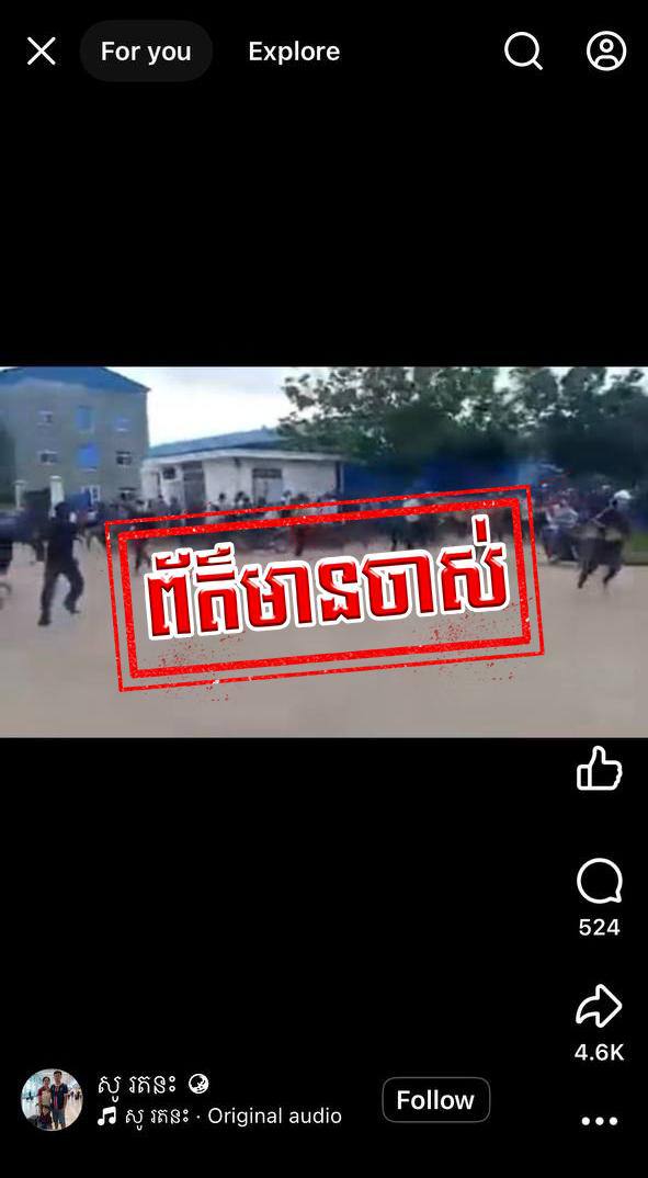 លោក ស៊ុន មេសា អ្នកនាំពាក្យក្រសួងការងារ និងបណ្ដុះបណ្ដាលវិជ្ជាជីវៈ មានប្រសាសន៍នៅថ្ងៃទី ១៦ ខែតុលានេះថា សូមម្ចាស់គណនីឈ្មោះ «សូ រតនះ» លុបចោលវីដេអូដែលមានរយៈពេល ៥៧វិនាទីនោះជាបន្ទាន់ ព្រោះមិនមែនជាហេតុការណ៍កើតឡើងថ្មីៗនេះទេ គឺកើតឡើងតាំងពីឆ្នាំ ២០១៩ មកម្លេះ ។