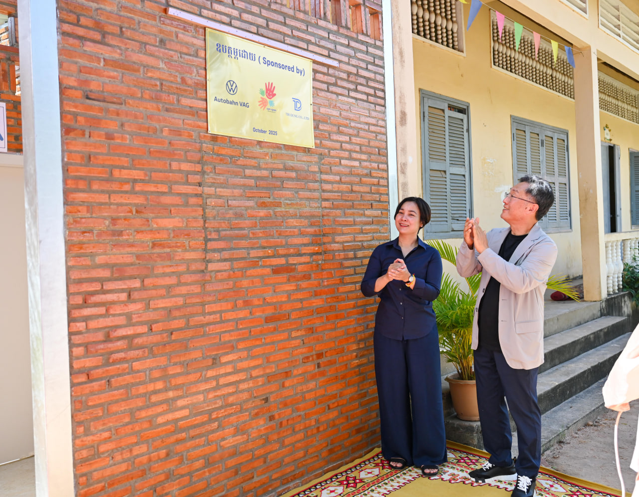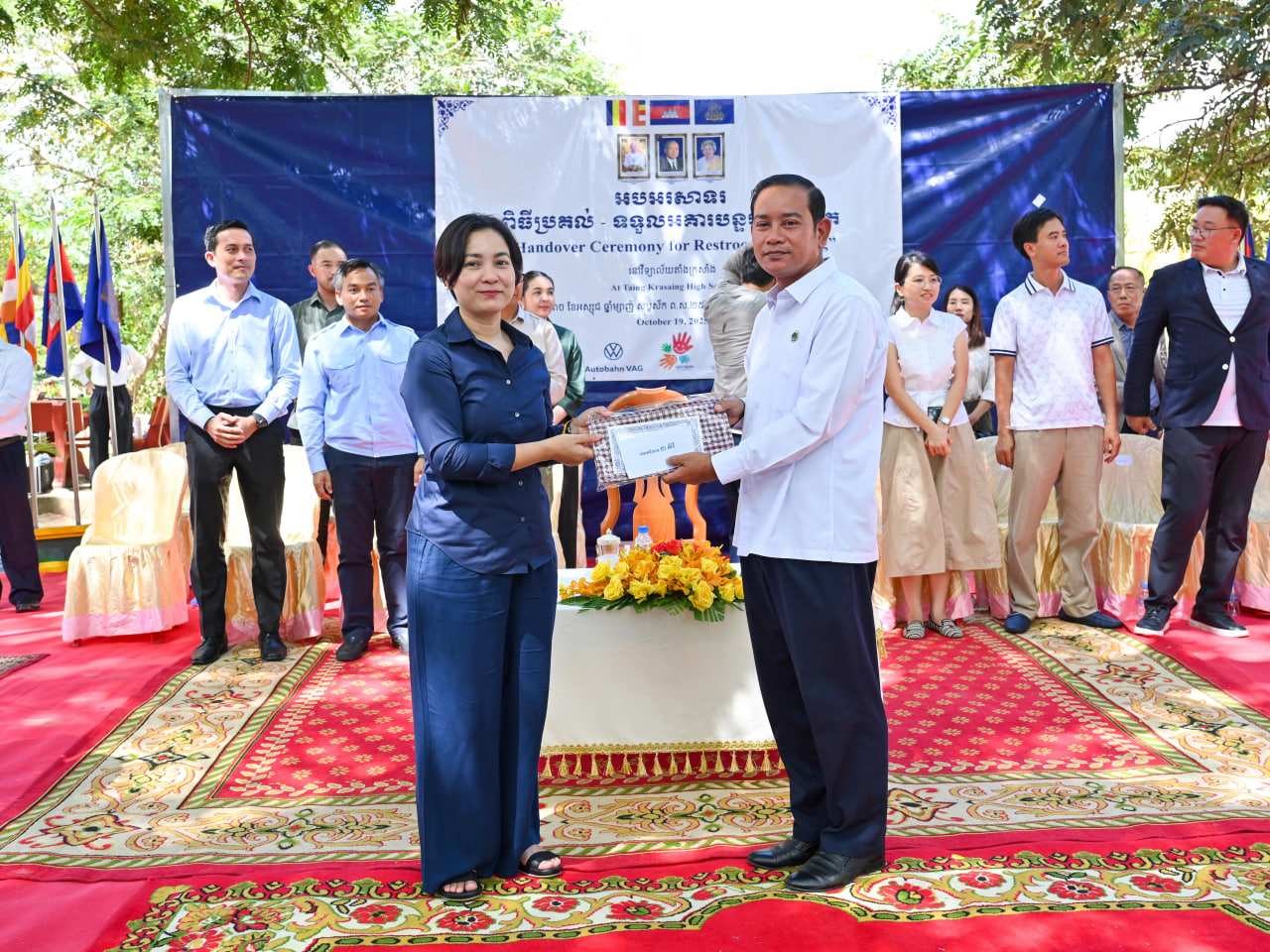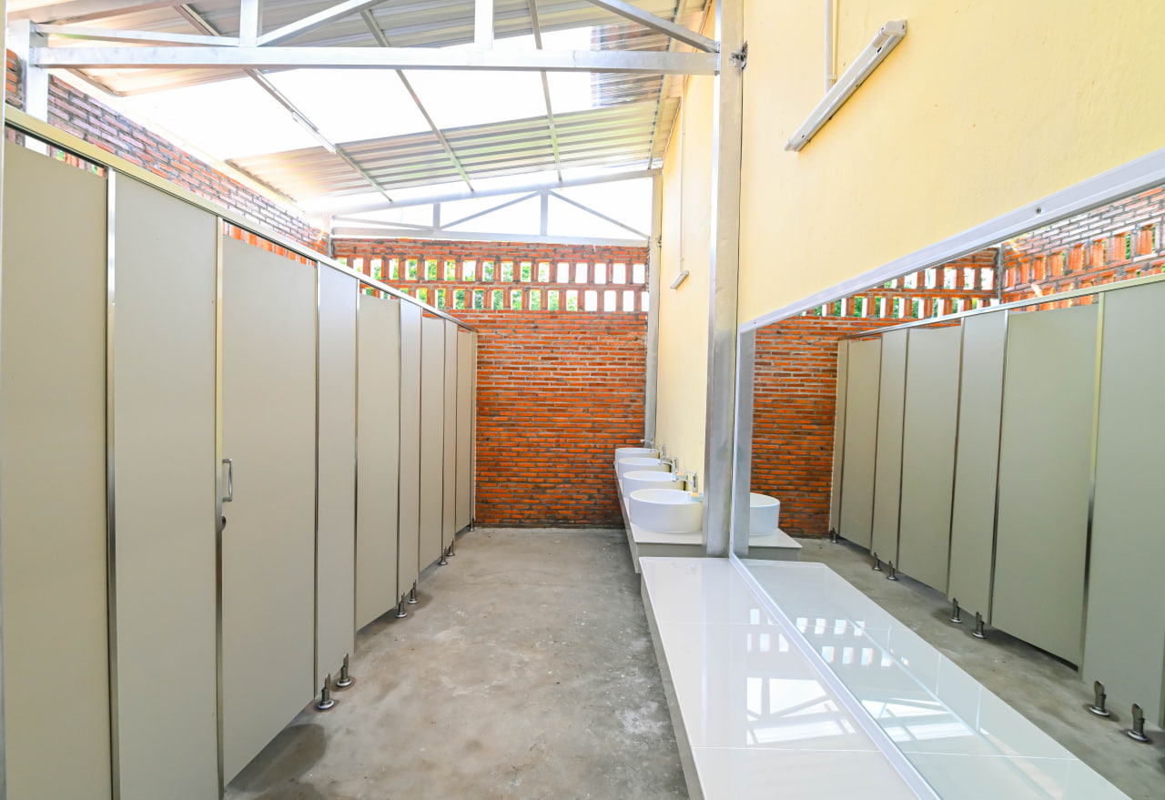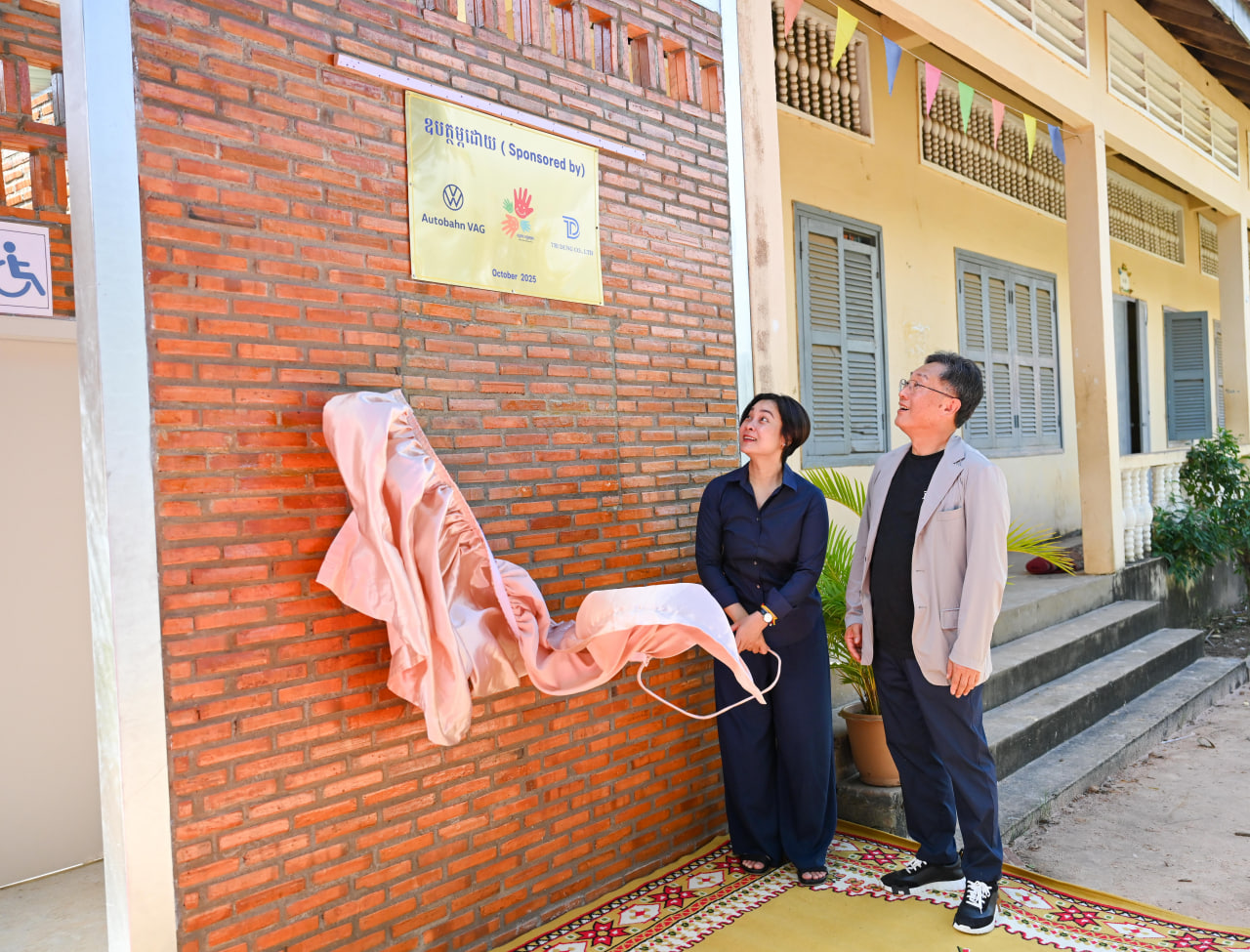 ខេត្តកំពង់ធំ៖ លោកគ្រូ-អ្នកគ្រូ និងសិស្សានុសិស្ស នៅវិទ្យាល័យតាំងក្រសាំង ស្ថិតនៅស្រុកសន្ទុក ខេត្តកំពង់ធំ ទទួលបានអគារបន្ទប់ទឹកស្អាត ដែលជាសមិទ្ធផលថ្មី នៃការចូលរួមលើកកម្ពស់បញ្ហាសុខភាព និងបរិស្ថាននៅក្នុងសាលារៀន ក្រោមគម្រោងគាំទ្រពី Autobahn VAG និង Tri Dong ។