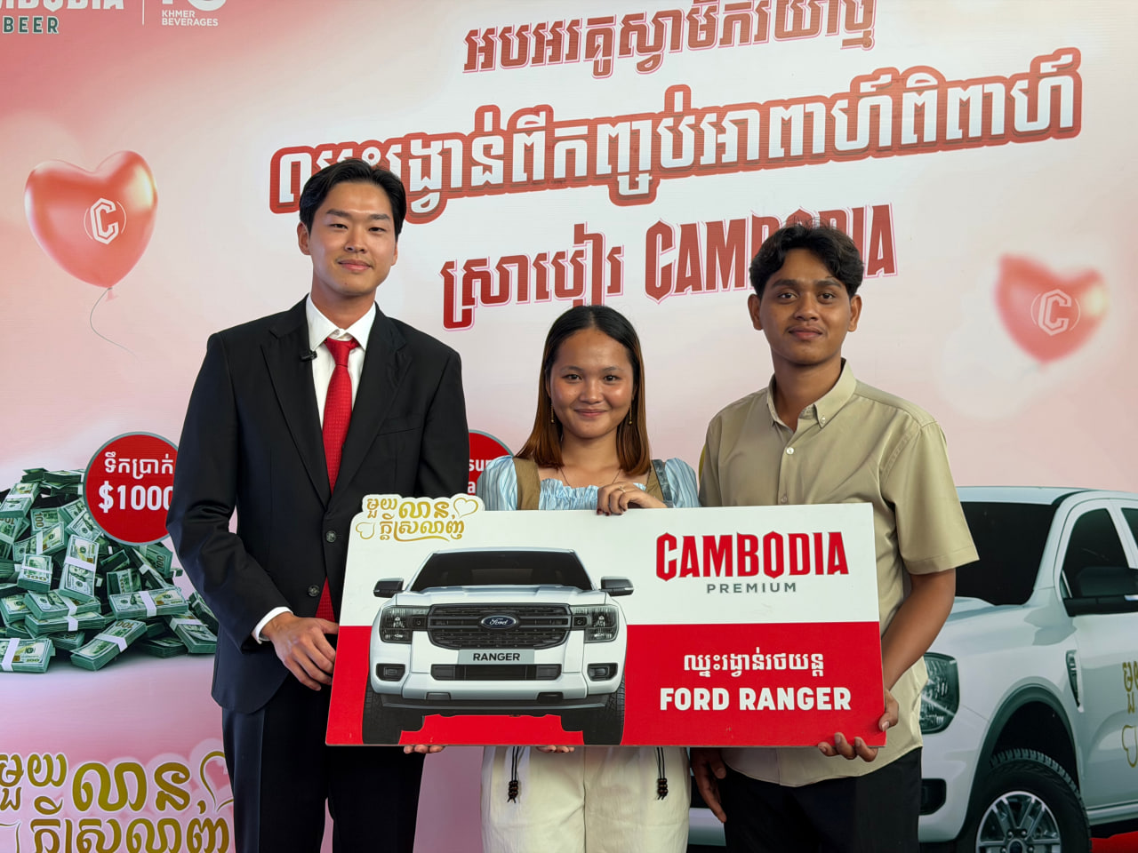 ក្នុងកម្មវីធីដ៏ពិសេសនេះ ក៏មានវត្តមាន លោកអគ្គនាយកបន្តវេន អ៊ឹង វីរៈ នៃក្រុមហ៊ុន ខ្មែរ ប៊ែវើរីជីស បានអញ្ជើញចូលរួមសំណេះសំណាល ដោយក្តីរំភើបរីករាយ និងស្និទ្ធស្នាល ជាមួយនឹងបងប្អូនគូស្នេហ៍ថ្មីថ្មោងផងដែរ ។ ខ្មែរ ប៊ែវើរីជីស សូមអបអរសាទរ ដល់គូស្វាមីភរិយាថ្មីទាំងអស់ ដែលបានឈ្នះរង្វាន់អាពាហ៍ពិពាហ៍ពី CAMBODIA BEER ដែលរួមមាន រថយន្ត FORD RANGER, ទូរស័ព្ទ SAMSUNG GALAXY Z FLIP 6, និងទឹកប្រាក់ 1000ដុល្លារ ជាច្រើនរង្វាន់ ព្រមទាំងថ្លែងអំណរគុណដល់ អតិថិជន ព្រមទាំងគូស្វាមីភរិយាទាំងអស់ ដែលបានជ្រើសរើសគាំទ្រផលិតផលខ្មែរពី ក្រុមហ៊ុនកូនខ្មែរ ដើម្បីបម្រើបរិយាកាសរីករាយនៅថ្ងៃមង្គលដ៏មានន័យ ។