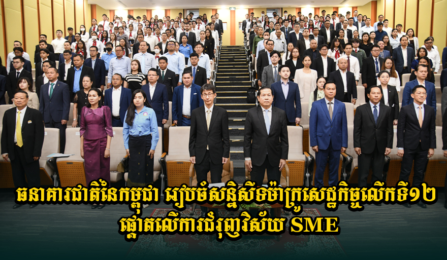 តាងនាមឱ្យធនាគារជាតិនៃកម្ពុជា ខ្ញុំសូមស្វាគមន៍យ៉ាងកក់ក្តៅចំពោះការអញ្ជើញចូលរួមរបស់ ឯកឧត្តម លោកជំទាវ លោក-លោកស្រី ទាំងអស់ ក្នុងសន្និសីទម៉ាក្រូសេដ្ឋកិច្ចប្រចាំឆ្នាំលើកទី១២ ឆ្នាំ២០២៥ របស់ធនាគារជាតិនៃកម្ពុជា ក្រោមប្រធានបទ «ការជំរុញការចូលរួមរបស់សហគ្រាសធុនតូចនិងមធ្យម (SME) ក្នុងការអភិវឌ្ឍសេដ្ឋកិច្ចកម្ពុជា» ។