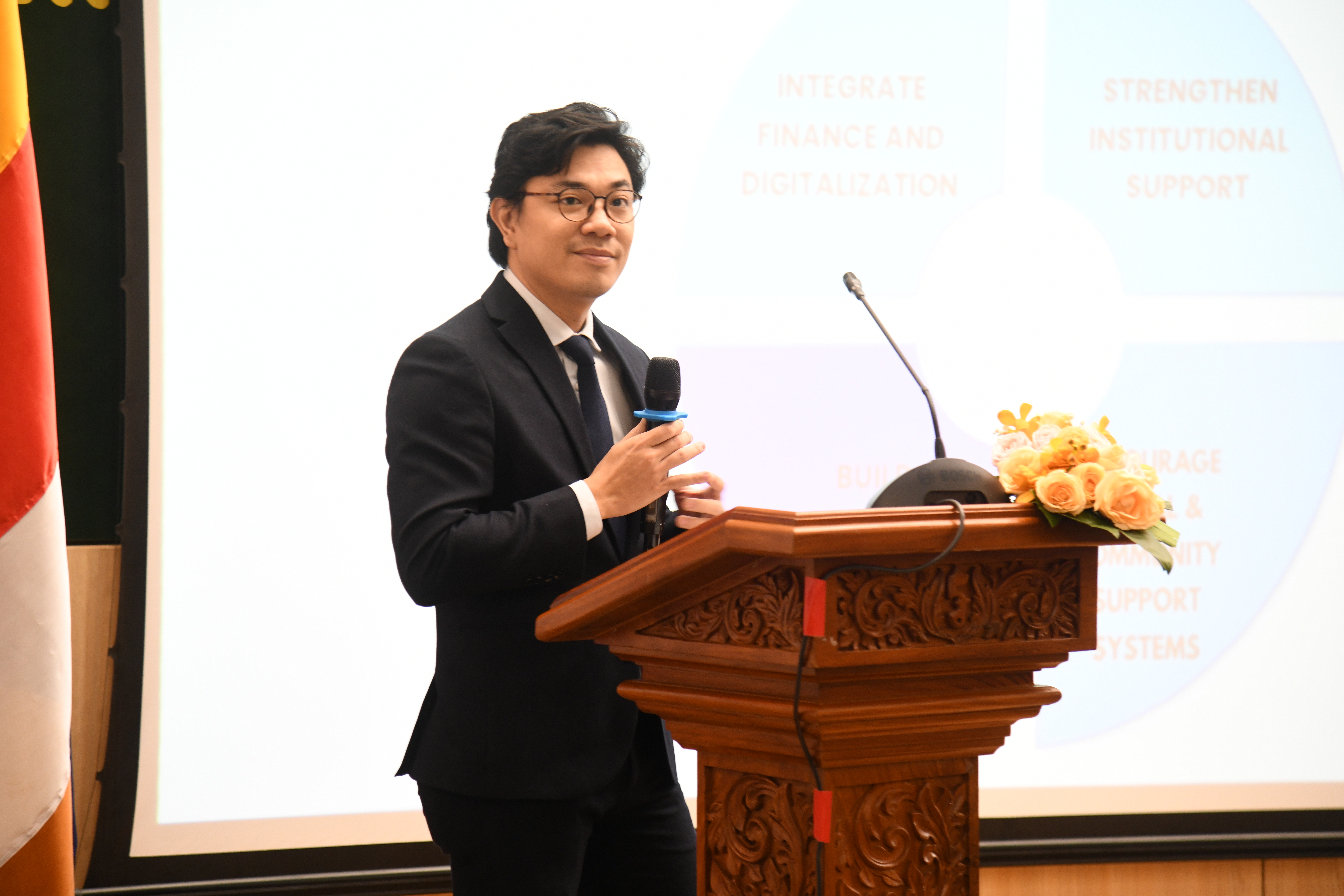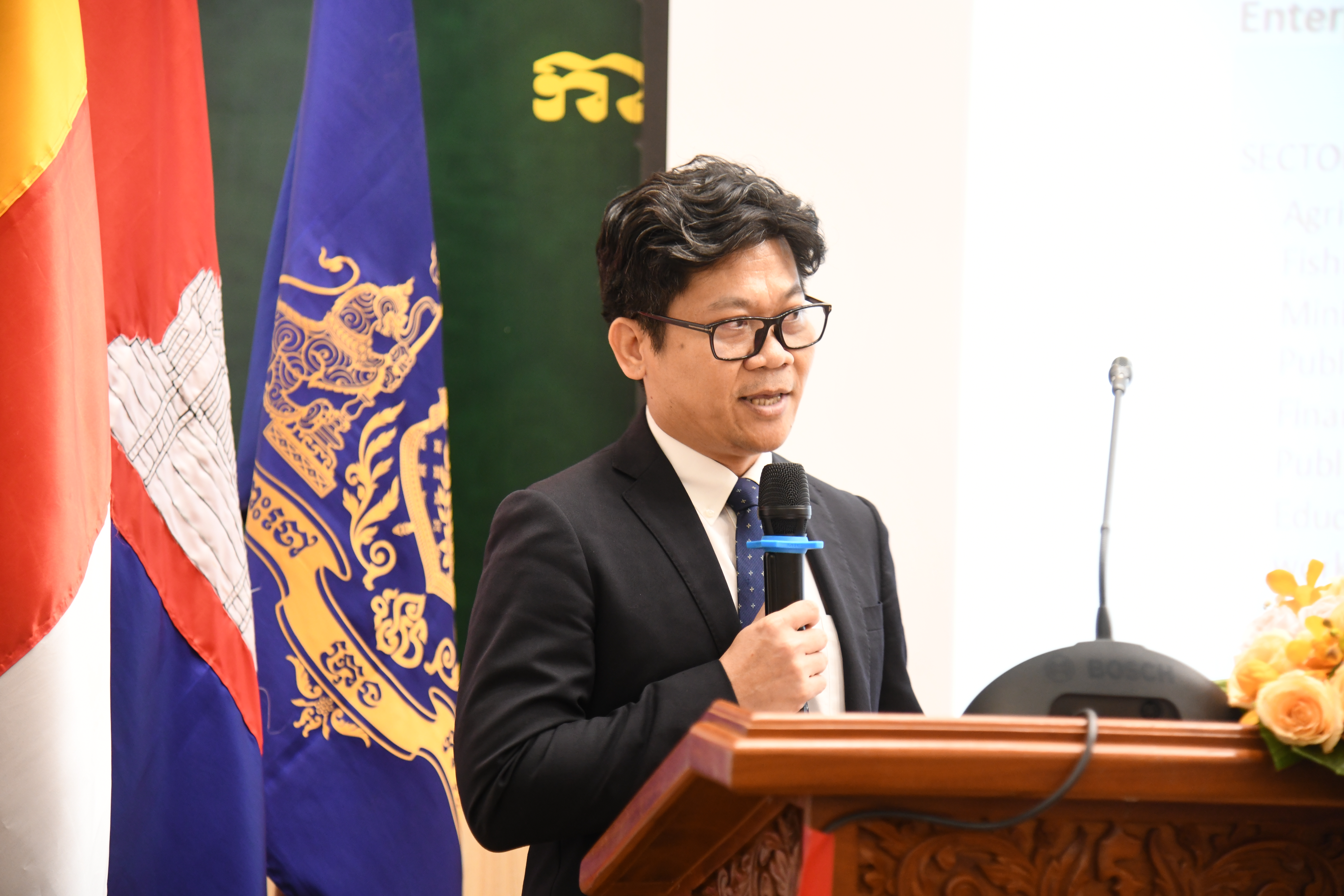 លោកបណ្ឌិត ឃូ វុឍ្ឍី ឧបការីទេសាភិបាល និងជាអគ្គនាយកគោលនោយបាយ និងសហប្រតិបត្តិការអន្តរជាតិ នៃធនាគារជាតិនៃកម្ពុជា ថ្លែងក្នុងសន្និសីទម៉ាក្រូសេដ្ឋកិច្ចប្រចាំឆ្នាំលើកទី១២ ឆ្នាំ២០២៥ ស្តីពី «ការជំរុញការចូលរួមរបស់សហគ្រាសធុនតូចនិងមធ្យមក្នុងការអភិវឌ្ឍសេដ្ឋកិច្ចកម្ពុជា» នៅវិទ្យាស្ថានសិក្សាបច្ចេកទេសធនាគារ ថ្ងៃទី២៦ ខែធ្នូ ឆ្នាំ២០២៥