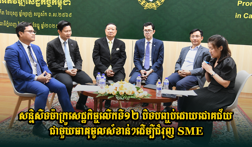 -ទី២ កិច្ចពិភាក្សាបានបញ្ជាក់ថា រចនាសម្ព័ន្ធសេដ្ឋកិច្ចកម្ពុជាកំពុងវិវឌ្ឍទៅរកគំរូដែលជំរុញដោយតម្រូវការក្នុងស្រុកកាន់តែច្រើន ជាពិសេសក្នុងស្ថានភាព ។ ក្នុងបរិបទនេះ SME ត្រូវបានរំពឹងថានឹងមានតួនាទីយុទ្ធសាស្ត្រកាន់តែសំខាន់ មិនត្រឹមតែបង្កើតការងារប៉ុណ្ណោះទេ ប៉ុន្តែថែមទាំងពង្រឹងខ្សែច្រវាក់ផ្គត់ផ្គង់ក្នុងស្រុក កែលម្អគុណភាពផលិតផល បង្កើនផលិតភាព និងឆ្លើយតបទៅនឹងការផ្លាស់ប្តូរចំណង់ចំណូលចិត្តអ្នកប្រើប្រាស់ ដែលកំពុងមាននិន្នាការគាំទ្រផលិតផលក្នុងស្រុកគួរឱ្យកត់សម្គាល់ ។ ដូច្នេះ SME ជាគន្លឹះសម្រាប់ការរក្សានិរន្តរភាពកំណើន និងការពង្រឹងភាពធន់នៃសេដ្ឋកិច្ច។